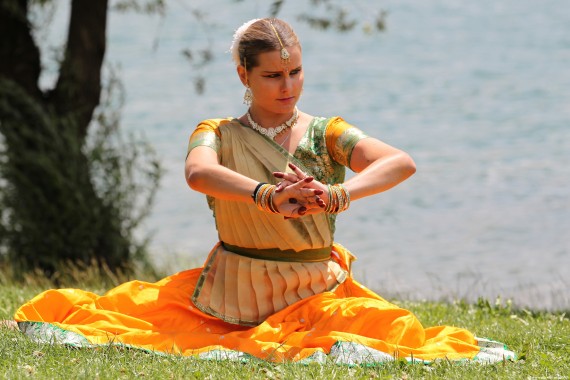 Intermédiaires : rythmes plus complexes et compositions techniques, travail de compréhension du Taal (mesure rythmique), pour l’aspect narratif, travail sur des chansons narrant les amours de Radha et Krishna ainsi que sur des prières plus longues.