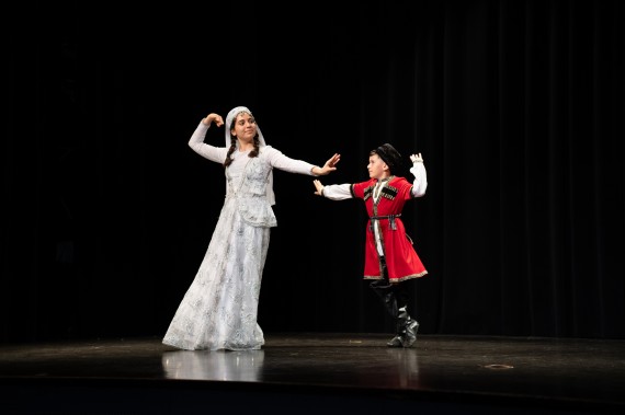 À l’inverse, les danses masculines, comme la plupart des danses de la région du Caucase, reposent sur un jeu de jambes rapide et virtuose. Les mouvements y sont souvent acrobatiques, techniquement exigeants, et reflètent l’énergie, la puissance et la précision propres aux interprétations masculines.