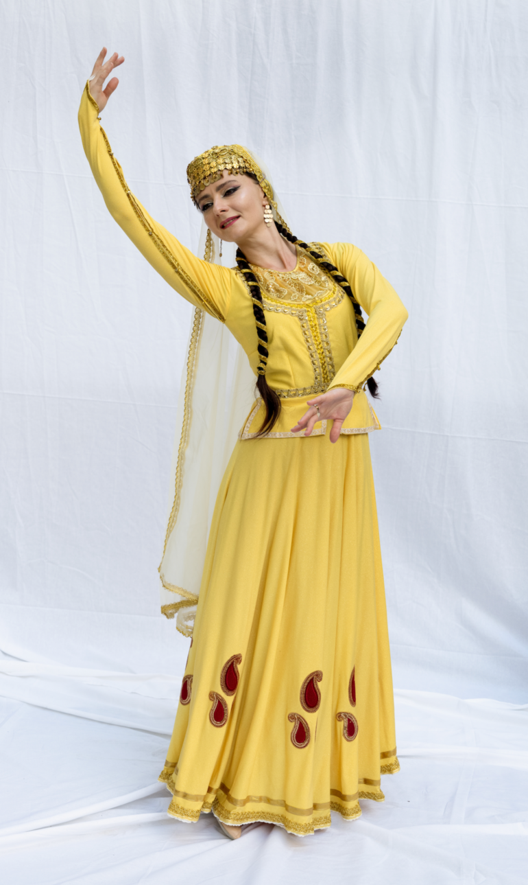 Les danses traditionnelles féminines, telles que Terekeme (danse nommée d’après une tribu), Nelbeki (danse avec soucoupe), Qaval rəqsi (danse avec tambourin), Turadji (inspirée du mouvement du francolin noir, oiseau symbolique), ou encore Sarı Gəlin, dont le titre peut se traduire par « la fiancée en jaune » ou « une jeune fiancée blonde » — une danse empreinte de douceur et de nostalgie.